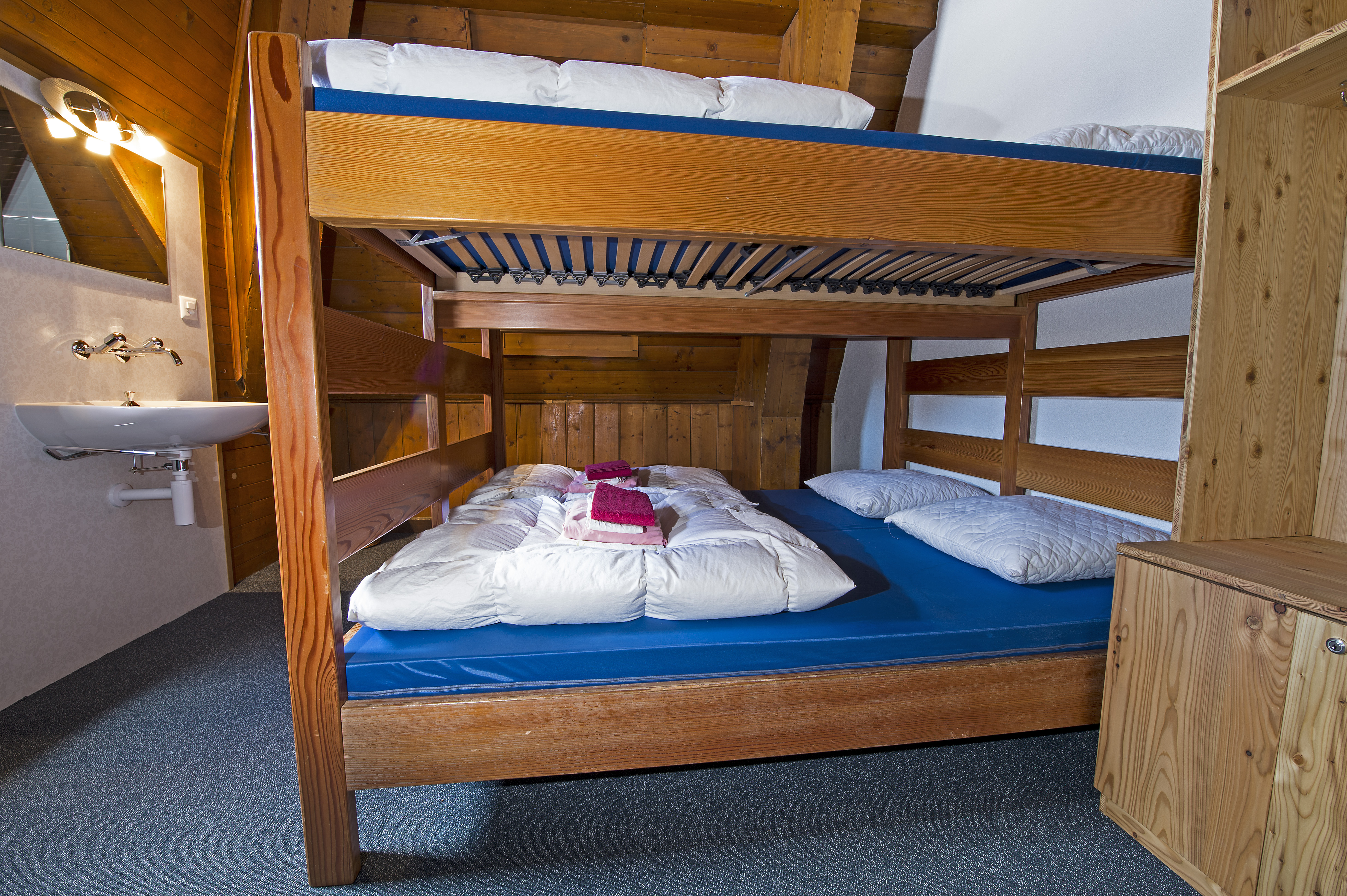 *Sans literie, avec sac de couchage personnel. Oreiller, taies d’oreiller et couvertures en laine à disposition. Sur demande, vous pouvez obtenir de la literie. Nous vous les facturons CHF 15.-/jeu.